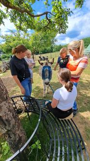 Am 20.5.2025 hatten die Kinder der Krabbelkiste gemeinsam mit ihren Eltern die Gelegenheit, eine spannende Stunde mit den Tieren vom Himberg in Ehringshausen zu verbringen. Unter Anleitung konnten die Kinder die Esel streicheln, sogar führen und so die Tiere aus nächster Nähe kennenlernen. Auch die Schafe und Alpakas waren sehr entspannt mit unseren neugierigen Besuchern. Neben den Tieren gab es die Möglichkeit, auf dem Spielplatz zu spielen, zu snacken und mehr über die Haltung der Tiere zu erfahren. Das schöne Erlebnis war ein Genuss voller Natur und Gesellschaft. Wir danken Carmen Kühn herzlich für die Organisation und die wundervolle Betreuung und wünschen ihr und ihren Tieren vom Himberg alles Liebe!
