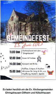| Sonntag, 25.06.2023 - Gemeindefest rund um die Jesus Christus-Kirche Dillheim | |
