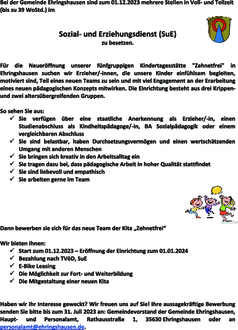 Stellenausschreibung - Sozial- und Erziehungsdienst (SuE)