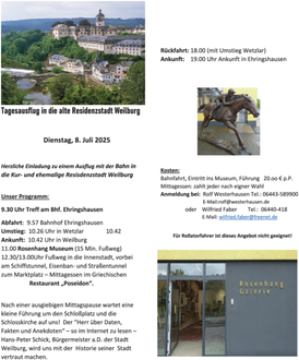 | Rückfahrt: | 18.00 Uhr | (mit Umstieg Wetzlar) |
