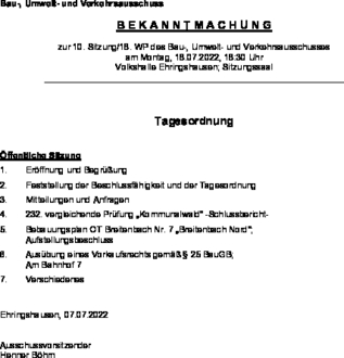 | 5. | Bebauungsplan OT Breitenbach Nr. 7 „Breitenbach Nord“; Aufstellungsbeschluss |