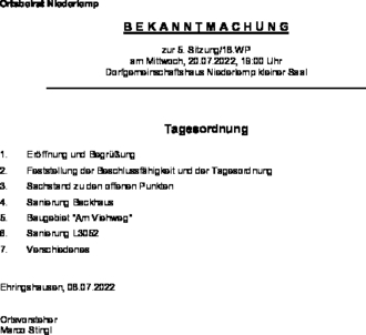 Nächster Artikel: Sprechzeiten der Gemeindeverwaltung