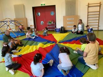 Nach den Sommerferien gehen die Vorschulkinder wöchentlich ins Haverhill Schwimmbad in Ehringshausen. Dort starten sie mit einer Wassergewöhnung und lernen spielerisch das Tauchen, Gleiten und die Schwimmbewegungen. Doch bevor es ins Schwimmbad geht lernten die 23 neuen Vorschulkinder der KiTa „Dillwiese“ in Ehringshausen die Gefahren am und im Wasser spielerisch kennen. Begleitet wurden sie dabei von drei Rettungsschwimmern des Turnvereins Ehringshausen. Die Kinder erlebten in einer Geschichte, was ein Rettungsschwimmer am Strand alles macht. Durch Bilder erlernten sie die Baderegeln und retteten sich zum Ende der Einheit mit einem Rettungsball gegenseitig aus dem „Meer“. Viele Kinder mögen das Wasser, leider ereignen sich dadurch nicht selten Unfälle im heimischen Umfeld (Regentonne, Gartenteich, Swimmingpool) oder in der Umgebung (Bach, Fluss). Wir freuen uns den Vorschulkindern, mit unserem Projekt „Mehr Bewegung in der Kita“, mehr Sicherheit im Wasser zu vermitteln.