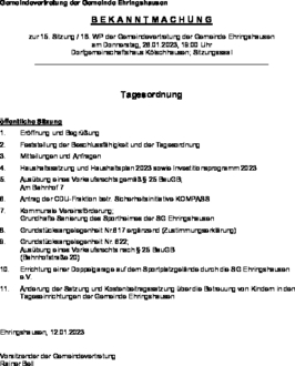 zur 15. Sitzung / 18. WP der Gemeindevertretung der Gemeinde Ehringshausen