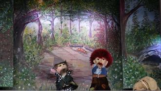 Die Räuber legen sich schlafen und Wuschel bittet die Kinder, Großmutter und Kasper alles zu erzählen, damit er wieder befreit wird.