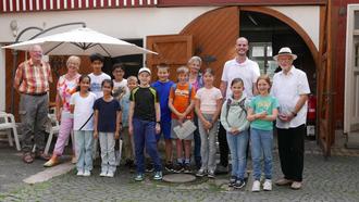 Am Montag dann waren die Ferienkinder der Gemeinde mit Sissi Steinbrecher wieder zu Gast. Die 12 Kinder wurden in drei Gruppen durch das Museum geführt. Einige der Kinder waren schon mit ihren dritten Klassen einmal im Museum. Nach über 90 Minuten intensivem Informationsaustausch ging es nach einer kleinen Stärkung zum Ausfüllen des Rallye-Fragebogens. Dazu konnten die Kinder bei kniffligen Fragen nocheinmal im Museum nachschauen. Als Belohnung für die gelösten Fragebögen verteilte der 1.Vorsitzende Horst Brück ein Eis an alle Teilnehmer. Christina Woeschka steuerte den Kuchen und lecker Käsestangen bei. Zum Schluß führte Florian Langsdorf noch mehrere Kurzfilme aus alten Zeiten vor, die die Kinder interessiert anschauten.