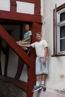 Zwei Kletterer unter den Fereinkindern