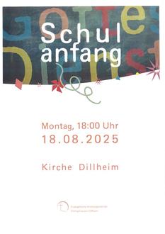 | 18.00 Uhr | Schulanfängergottesdienst in der Jesus Christus-Kirche Dillheim |