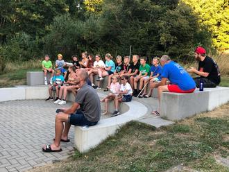 Am Mittwoch, den 10.08.2022 trafen sich die Kinder des Ferienprogramms samt ihren Koffern an der Volkshalle, um zusammen mit dem Betreuerteam der Jugendpflege an den Heisterberger Weiher zu fahren. Das freizeiterprobte Team bestehend aus Florian Langsdorf, Gian-Luca Steinbrecher, Stephan Schwarz und Jaqueline Glöckler, unter der Leitung von der Jugendpflegerin Sissy Steinbrecher, hatte ein spannendes Programm für die folgenden Tage geplant. Nach der Ankunft wurde schnell das Gepäck ausgeladen und verstaut, sodass im Anschluss direkt ein Rundgang über das Gelände des Jugendheims und ein Abstecher an den Weiher gemacht werden konnte. Zurück bei der Jugendherberge konnten sich die Kinder noch ein wenig auf ihren Zimmern einrichten, bevor es dann gemeinsam zum Abendessen ging. Die freie Zeit nach dem Essen bis zum nächsten Programmpunkt, nutzten die Jungs, zur großen Erheiterung aller, um sich von den Mädchen schminken zu lassen. Aufgehübscht und voller Motivation trafen sich alle anschließend draußen, um eine Nachtwanderung um den Weiher zu starten. Bei dieser wurden keine Taschenlampen mitgenommen, sodass der Gruppe lediglich bunte Leuchtarmbänder als Lichtquelle dienten.