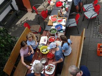 Jede Gruppe gab dabei ihr Bestes. Es wurden Spieße gebaut, eigene Grill- und Salatsaucen kreiert. Das Grillfeuer war entfacht und es konnte auf dem heißen Grill die vorbereiteten Produkte aufgelegt werden.