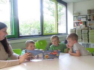 Anschließend konnten die Kinder die Bücherkisten durchstöbern und sich Bücher aussuchen, die wir gemeinsam Vorgelesen haben.