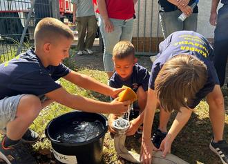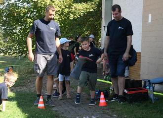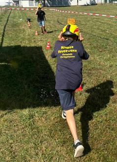 Nach dem Startschuss galt es für den sechs- bis zehnjährigen Feuerwehrnachwuchs in neun Disziplinen zu punkten. Es galt unter anderem Ausdauer, Geschicklichkeit, Zielgenauigkeit und auch ein wenig Kreativität unter Beweis zu stellen. „Trotz Wettkampfcharakter wird Spaß sehr groß geschrieben“, betont Anja Spahn vom Feuerwehrverband Wetzlar. Spahn, Jens Regel, Armin Lühring und Michael Trägner vom Feuerwehrverband Wetzlar waren bei den fünfstündigen Spielen dabei und wachten auch über einen fairen Ablauf. Es mussten Türen mit einem gekonnten Tritt geöffnet werden, im „Blindflug“ wurden Trupps per Stimme ans Ziel geführt, es entstanden „Hydrantenmännchen“ aus Feuerwehrgerätschaften, beim „Schlauchspülen“ wurde Wasser durchs Schlauinnere befördert und beim „Löschangriff“ mussten Flammen mit einem gezielten Wasserstrahl gelöscht werden. Aber auch beim Stiefelweittreten, beim Schlauchkegeln oder bei einem Hindernis- und einem Löschwasserparcours, deren nass-kühle Bewältigung bei den sommerlichen Temperaturen bei dem Feuerwehrnachwuchs besonders willkommen war, hatten die Teilnehmer viel Spaß.