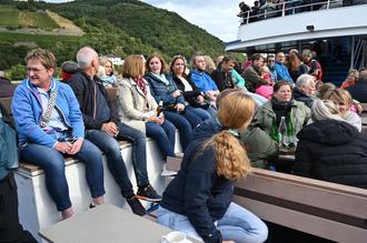 Im Reisebus ging es zunächst nach Rüdesheim, bekannt für die historische Altstadt mit der Drosselgasse, die Besucher aus aller Welt anzieht. Nach einem gemeinsamen Mittagessen konnte ein gemütlicher Spaziergang durch die Stadt oder eine Fahrt mit der Seilbahn zum Niederwalddenkmal unternommen werden. Es folgte eine Schifffahrt durch das Obere Mittelrheintal, das seit 2002 zum UNESCO-Welterbe gehört, und mit steilen Weinbergen und zahlreichen Burgen beeindruckte.