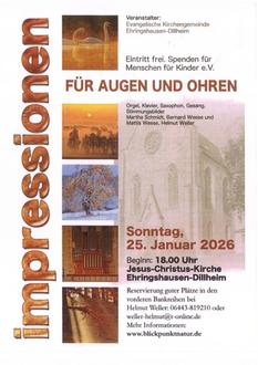 | 18.00 Uhr | Konzert: IMPRESSIONEN in der Jesus Christus-Kirche Dillheim |