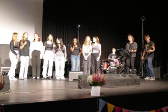 Ines Gräfe vom Staatlichen Schulamt lobte die überaus gelungene Renovierung und betonte den hohen Stellenwert für gelingendes Lernen. Anschließend überraschte die Vorsitzende des Schulelternbeirats, Daniela Kühn, Schulleiterin Schilling mit einem Baum als Geschenk. Dieser soll in Zukunft nicht nur für Beschattung im Schulhof sorgen, sondern auch ein Symbol für die sich entwickelnde Schule sein. Erkan Dogan, Vorstandsmitglied des Fördervereins, würdigte danach die sehr gute Zusammenarbeit und erläuterte in diesem Zusammenhang auch die Arbeit des Fördervereins innerhalb der Schulgemeinde. Schulsprecherinnen Anastasia Klester und Charlotte Wild waren sich einig, dass die Schule nun noch mehr ein Ort des Wohlfühlens und des guten Miteinanders sei. Musikalisch wurde die Feierstunde von der Schulband unter der Leitung von Lukas Weiher, der Musicalgruppe des Wahlpflichtkurses und dem Projektchor 9 unter der Leitung von Konstanze Korth-Neumann und Johannes Herzog umrahmt.