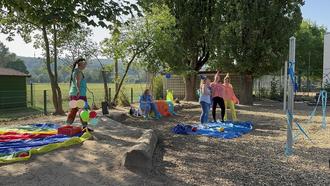 Bei strahlendem Sonnenschein führten die Fachkräfte das Theaterstück vom Blauland auf.