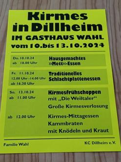 | ab 12.00 Uhr | Kirmes-Mittagessen |