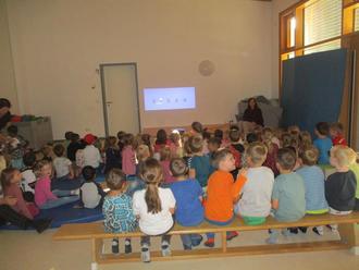 Um 10:00 Uhr hat sich unser Turnraum in ein Kino verwandelt und gezeigt wurde Cars 2. Was durfte sicherlich nicht fehlen? POPCORN!!! Das gab es natürlich auch für unsere Kinder. Auch die Krippenkinder hatten ihre Kino-Zeit. Sie schauten Yakari und naschten dabei leckere Kekse.