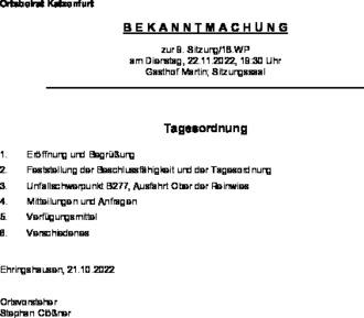 - Feststellung der Beschlussfähigkeit und der Tagesordnung