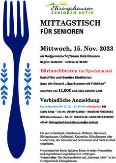Am Donnerstag, den 9. Nov. 2023 servieren wir Ihnen