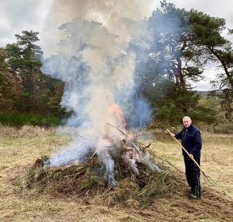 Am 2. November war es wieder soweit und 17 aktive Mitglieder haben in Handarbeit Sträucher und Büsche entfernt, die dort nicht hingehören. Das ist notwendig, damit keine Verbuschung eintritt. Anschließend wurden die gesammelten Pflanzen verbrannt, so daß keine Keimung mehr möglich ist.
