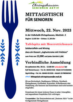 Am Donnerstag, den 16. Nov. 2023 servieren wir Ihnen