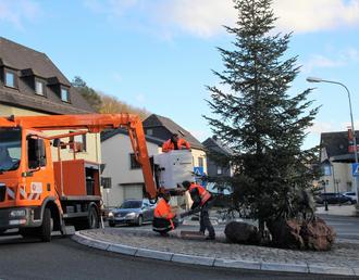 Das diesjährige Schmücken des Baumes am Gaasemaad-Kreisel nahm Klaus-Peter Bender zum Anlass, um sich bei Huttels für deren Einsatz zu bedanken. "Ohne Huttels uind ihren Hubsteiger würde in Ehringshausen vor dem Advent etwas fehlen - wenn die Bäume geschmückt sind und die Motive an den Straßenlampen leuchten, kann es Weihnachten werden", so Bender und weiter: "Natürlich haben auch wir darüber nachgedacht, ob es in diesem Jahr angemessen ist, die Weihnachtsbeleuchtung zu installieren. Alle reden vom Strom sparen und Ehringshausen hängt als Klimakommune die Weihnachtsbeleuchtung auf." Aber bereits im vergangenen Jahr wurden auf Vorschlag von Huttels die Motive an den Straßenlampen konsequent auf LED-Technik umgestellt und der Stromverbrauch um 90 gesenkt. "In diesem Jahr haben wir dann noch für die Weihnachtsbäume LED-Lichterketten angeschafft, wobei sich der Strombedarf sogar von 200 auf 2 Watt pro Lichterkette senkt", so Bender zum Hintergrund. Und so erstrahlt Ehringshausen dank Heinrich Huttel und seinen Mannen mittels modernster LED-Technik auch in diesem Jahr in weihnachtlichem Glanz.