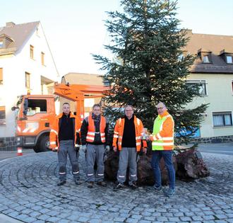 Wenn die Elektrofirma Huttel in Ehringshausen mit dem Hubsteiger unterwegs ist, weiß jeder: Es wird wieder Weihnachten! So ist es auch in diesem Jahr. Auch nach 48 Jahren steigt Heinrich Huttel persönlich in den Arbeitskorb des Hubsteigers und fährt zur Spitze des Weihnachtsbaumes. Sein Bruder Ulrich führt von unten die Lichterkette nach und achtet darauf, dass die elektrischen Kerzen gleichmäßig am Baum verteilt werden.