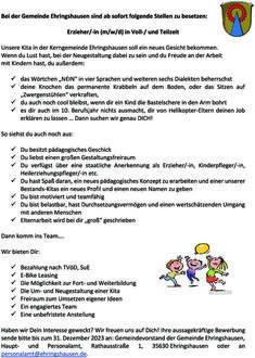 Bei der Gemeinde Ehringshausen sind ab sofort folgende Stellen zu besetzen: