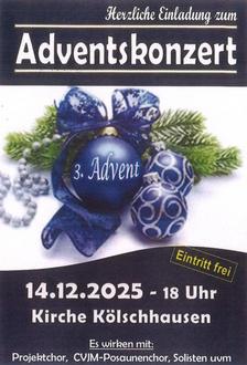 | 18.00 Uhr | Adventskonzert in der Kirche in Kölschhausen |