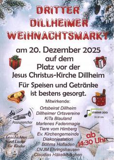 | 15.00 Uhr | Kindergottesdienst in der Jesus Christus-Kirche Dillheim (Krippenspielprobe) |