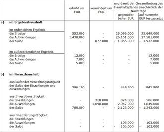 Der Ergebnishaushalt weist einen Fehlbetrag in Höhe von 1.932.000 € aus. Der Haushaltsausgleich ist durch den Rückgriff auf die ordentliche Rücklage (§24 GemHVO) sichergestellt.