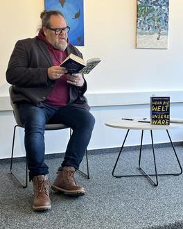 Linker las ausgewählte Passagen seinem dem Buch, das die Geschichten dreier Jugendlicher in völlig unterschiedlichen historischen Kontexten miteinander verwebt. Harry kämpft sich durch die Trümmer der Nachkriegszeit, Jennifer wird aufgrund ihrer regimekritischen Haltung in den härtesten Jugendwerkhof der DDR eingewiesen und Nadiem, ein junger Slam-Poet, sieht sich bei seinem ersten großen Auftritt einem aufgebrachten rechten Mob gegenüber.