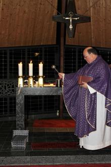 Am Samstag, den 03. Dezember 2022, segnete Pfarrer Benner anlässlich der Vorabendmesse in Katzenfurt die Aufkleber