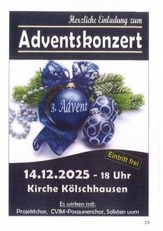 | 18.00 Uhr | Adventskonzert in der Kirche in Kölschhausen |