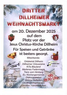| ab 14.30 Uhr | Weihnachtsmarkt rund um die Jesus Christus-Kirche Dillheim |