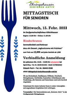 Am Donnerstag den 09. Februar 2023 servieren wir Ihnen