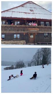 Los ging es am Faschingsdienstag in die Schwarzwaldhütte in Wieden. Die Schlitten durften natürlich nicht fehlen, denn die Wettervorhersage hat schon Schnee angekündigt. Tatsächlich, als wir ankamen, war es ein glänzendes Winterwonderland. Wir konnten tolle Sachen bauen, wie Schneemänner mit FCK-Kappen, Iglus oder Schneeliegen. Ein unvergesslicher Spaß war der große Hügel direkt neben der Hütte. Das Schlittenrennen hat begonnen. Wer war wohl am schnellsten? Wir konnten richtig weit den Hügel herunter rodeln und haben uns sogar selbst Rampen gebaut, so dass wir richtig durch die Luft geflogen sind. Das hat so viel Freude bereitet, dass wir abends den Tag in der Sauna ausklingen ließen.