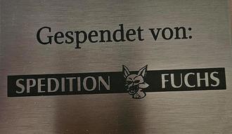 Mit einer eigens vom Förderverein angefertigten Metalltafel für das Xylophon halten wir unseren langjährigen und regelmäßigen Förderer und Freund „Spedition Fuchs“ in Ehren. Herzlichen Dank!