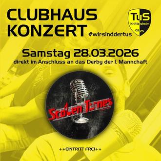 Unser nächstes Clubhaus-Konzert steht an und die Stolentunes sind wieder am Start! Beim letzten Mal war die Stimmung für einen Sonntagnachmittag schon sensationell! Dieses Mal findet das Clubhaus-Konzert an einem Samstag statt. Das wird ein Abend für alle, die den TuS feiern, gute Musik lieben und einfach zusammenkommen, um eine richtig geile Zeit zu haben!