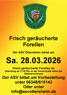 Die vorbestellten Forellen können am kommenden Samstag, den 28. März, ab 11:30 Uhr an der Vereinshalle abgeholt werden.