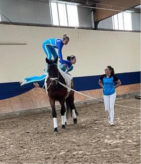 11 Voltigierer und 1 Trainer hatten den Basispass Pferdeführerschein „Praktischer Umgang mit dem Pferd“, 8 Voltigierer das Abzeichen Klasse 7, 5 Voltigierer das Abzeichen Klasse 9 und 3 Voltigierer das Abzeichen Klasse 10 bestanden. Die Einzelvoltigiererin des Vereins durfte sich nach langer Pause besonders freuen: Luise H. ist im Besitz des Voltigierabzeichens Klasse 3 und hat damit die Qualifikation zum Einzelvoltigieren, wie auch zur möglichen Trainerlaufbahn erfolgreich bestanden.