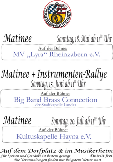 Die Matineen auf dem Ottersheimer Dorfplatz haben uns und unseren Gästen im vergangenen Jahr viel Freude bereitet.