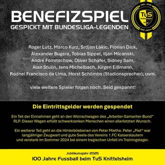 Kicken für den guten Zweck - Benefizspiel mit Bundesliga-Legenden in Knittelsheim