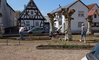 | - | Herauskratzen des Unkrauts zwischen den Wegsteinen – eine besonders mühsame, aber erfolgreiche Aufgabe, |