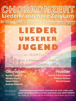 Vorverkauf Konzert 13.06.2026 Fuchsbachhalle Zeiskam über Homepage Liederkranzchöre Zeiskam. JR