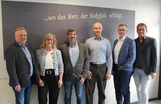 v.l.n.r.: Volker Rüth, (Teamleiter, Muth Engineering), Margit Pfundstein (Klimaschutzmanagerin), Jochen Renner (Bauabteilungsleiter), Thomas Wagner (Projektleiter, Muth Engineering), Thorsten Flick, (Geschäftsführer, Muth Engineering), Bürgermeister Gerald Job