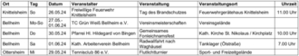 | Ort | Tag | Datum | Veranstalter | Veranstaltung | Veranstaltungsort | Uhrzeit |