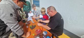 Außerdem war die Fa. Angel Waldi anwesend und hatte einen Drill-Simulator aufgebaut, an dem alle Jugendlichen und natürlich auch Erwachsenen den Drill mit kleinen und großen Fischen einmal testen konnten.