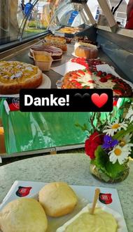 Kuchentheke und Dampfnudelnverkauf